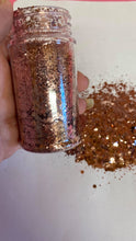Beautiful rose gold chunky mix polyester glitter comes in shaker bottle